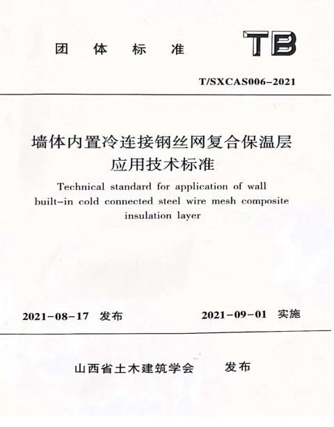 山西龍城建設集團主編的山西省土木建筑學會團體標準《墻體內(nèi)置冷連接鋼絲網(wǎng)復合保溫層應用技術(shù)標準》T/SXCAS006-2021,已于2021年8月17日發(fā)布,2021年9月1日正式實施。